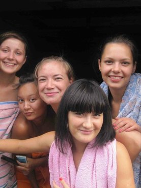 Молодая девушка с белокурыми локонами расположилась на территории частного особняка возле невысокого забора. Она торопливо избавилась от купальника и показала всем желающим свою гладковыбритую промежность. Так как по соседству с ней находилось еще несколько домов, за действиями развратницы наблюдали сразу несколько заинтересованных мужчин.